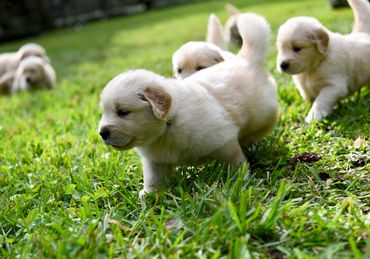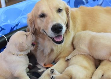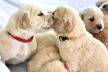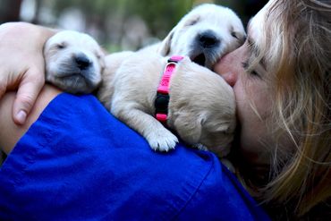 As breeders, we produce several litters per year of top-notch Golden Retrievers with the qualities required for show and field trial championships. Our Golden Retriever pups are raised and socialized in our home as a part of our family, and we work daily with them to begin the house-breaking, trailing, and training processes. We strive to breed to the highest of standards, and our dogs are not only beautiful show quality, but are skilled hunters as well as obedient and loyal companions. Our Goldens are OFA tested and we select only the best of the best (Champions and Grand Champions) to sire our litters. Previous studs have participated in Westminster, have completed all health checks and are chosen for temperament and genetics. We have been breeding Goldens for over 15 years and have a proven track record.